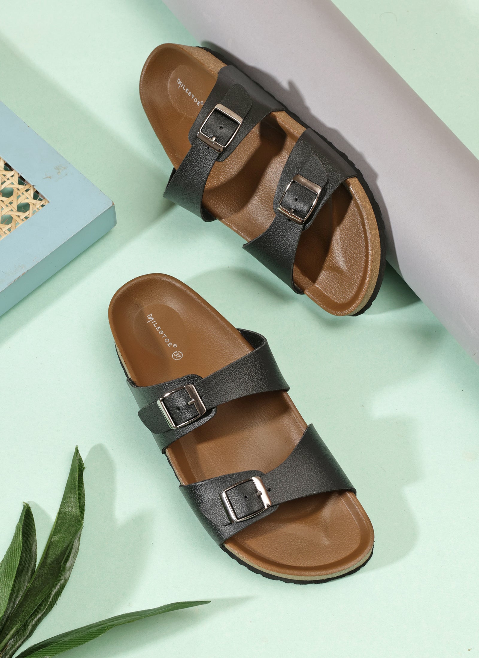 Bliss Women’s Comfort Slip-On Sandals with Arch Support | Adjustable Double Buckle Straps | Ergonomic and Soft Cushioned Footbed | Lightweight | Latest, Stylish and Trendy Footwear for Women