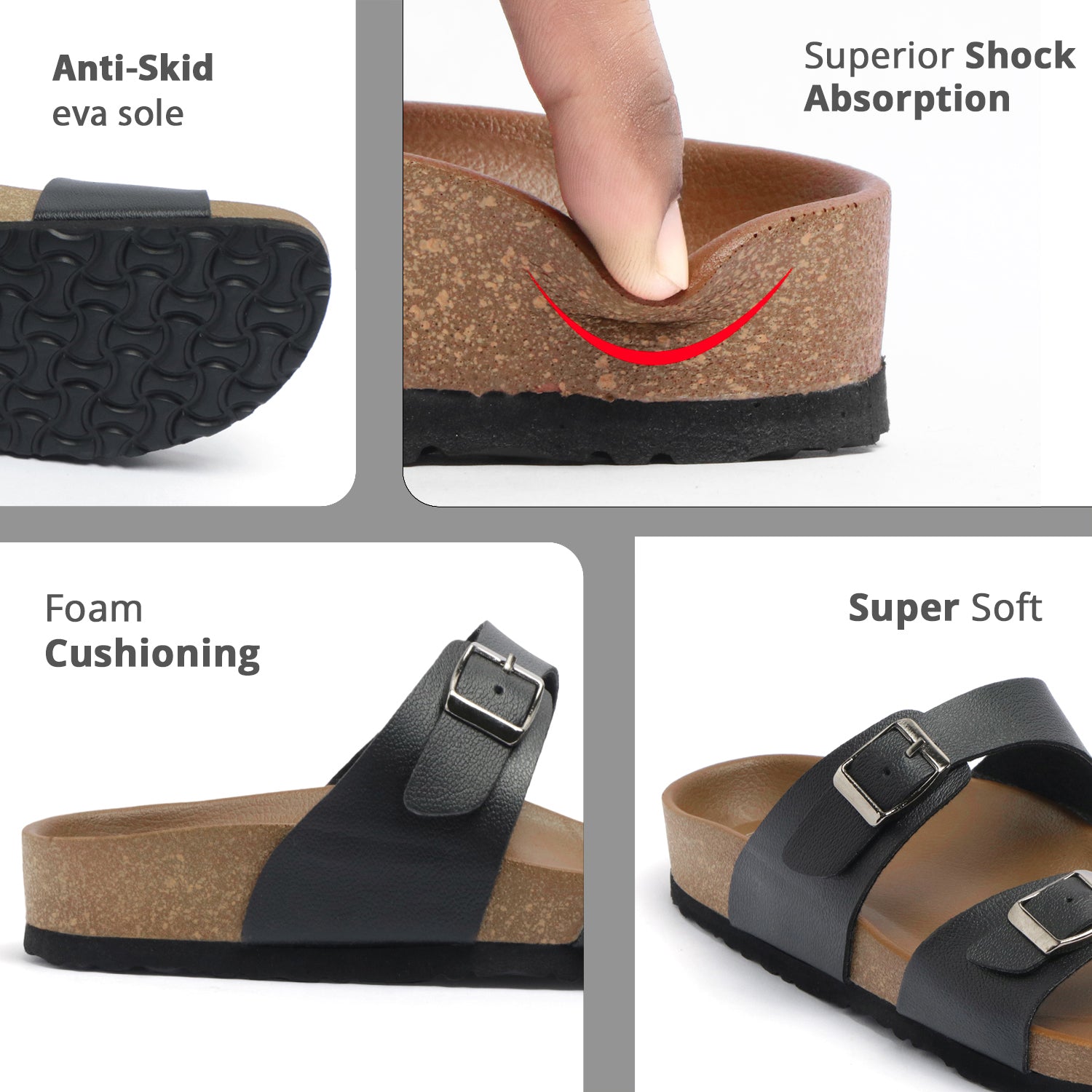 - Bounce-Back Cushioning with Shock Absorption: The footbed features a cork-pattern design with responsive bounce-back cushioning that absorbs impact with every step. Whether you're walking on pavement or indoors, it provides smooth motion and reduces pressure on knees, hips, and lower back.