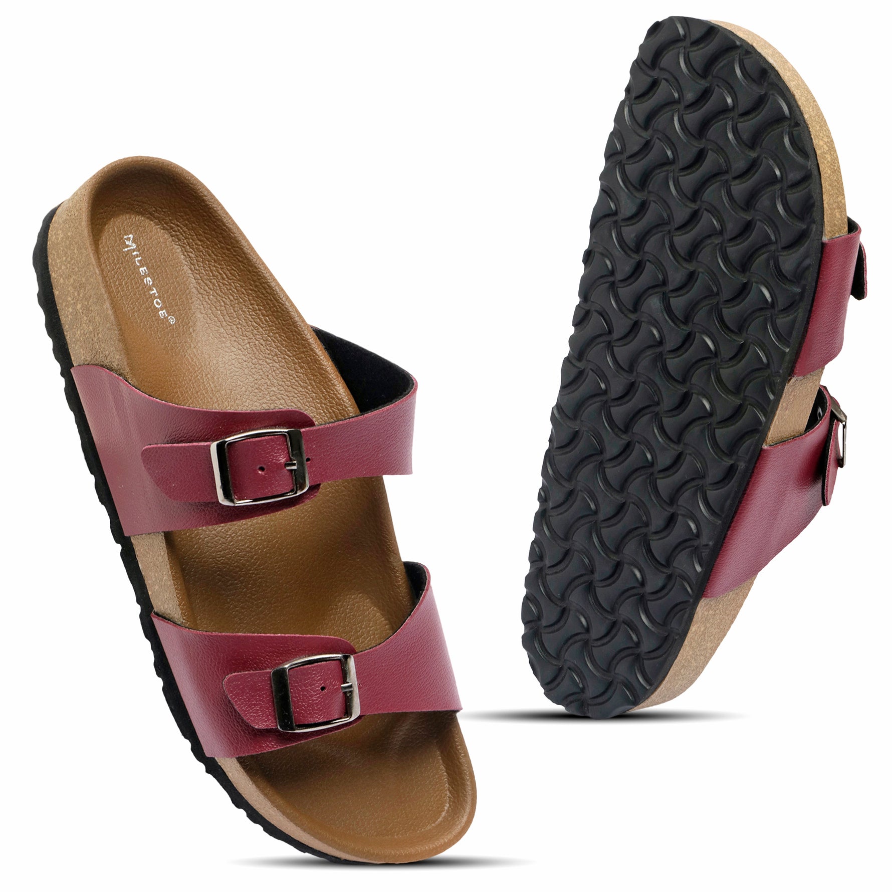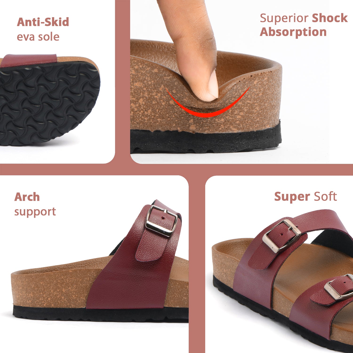 Bliss Women’s Comfort Slip-On Sandals with Arch Support | Adjustable Double Buckle Straps | Ergonomic and Soft Cushioned Footbed | Lightweight | Latest, Stylish and Trendy Footwear for Women