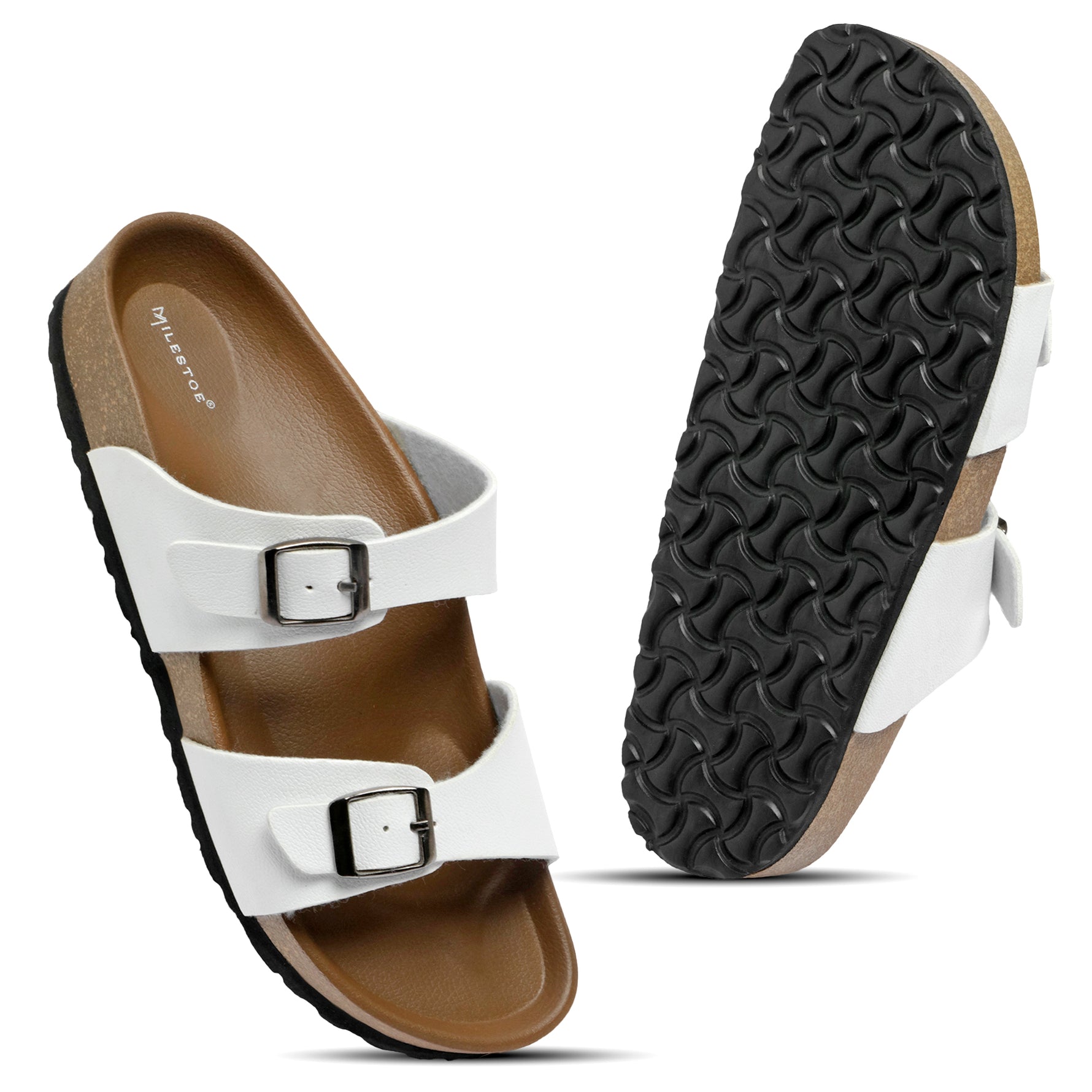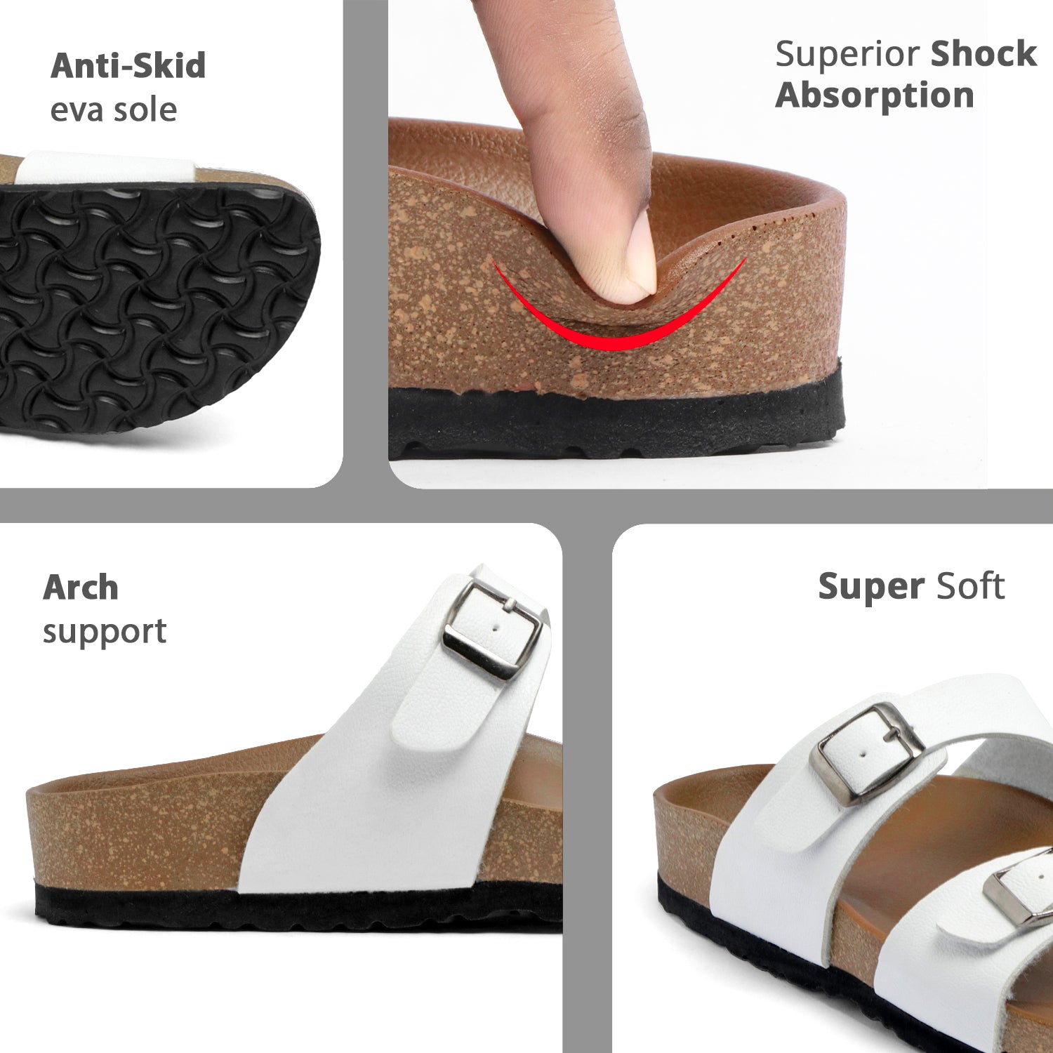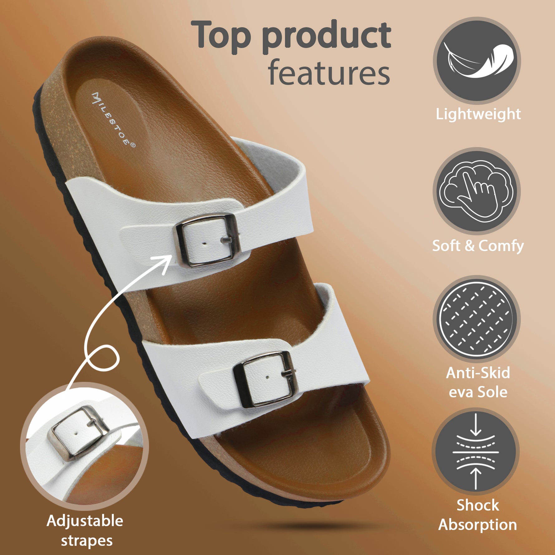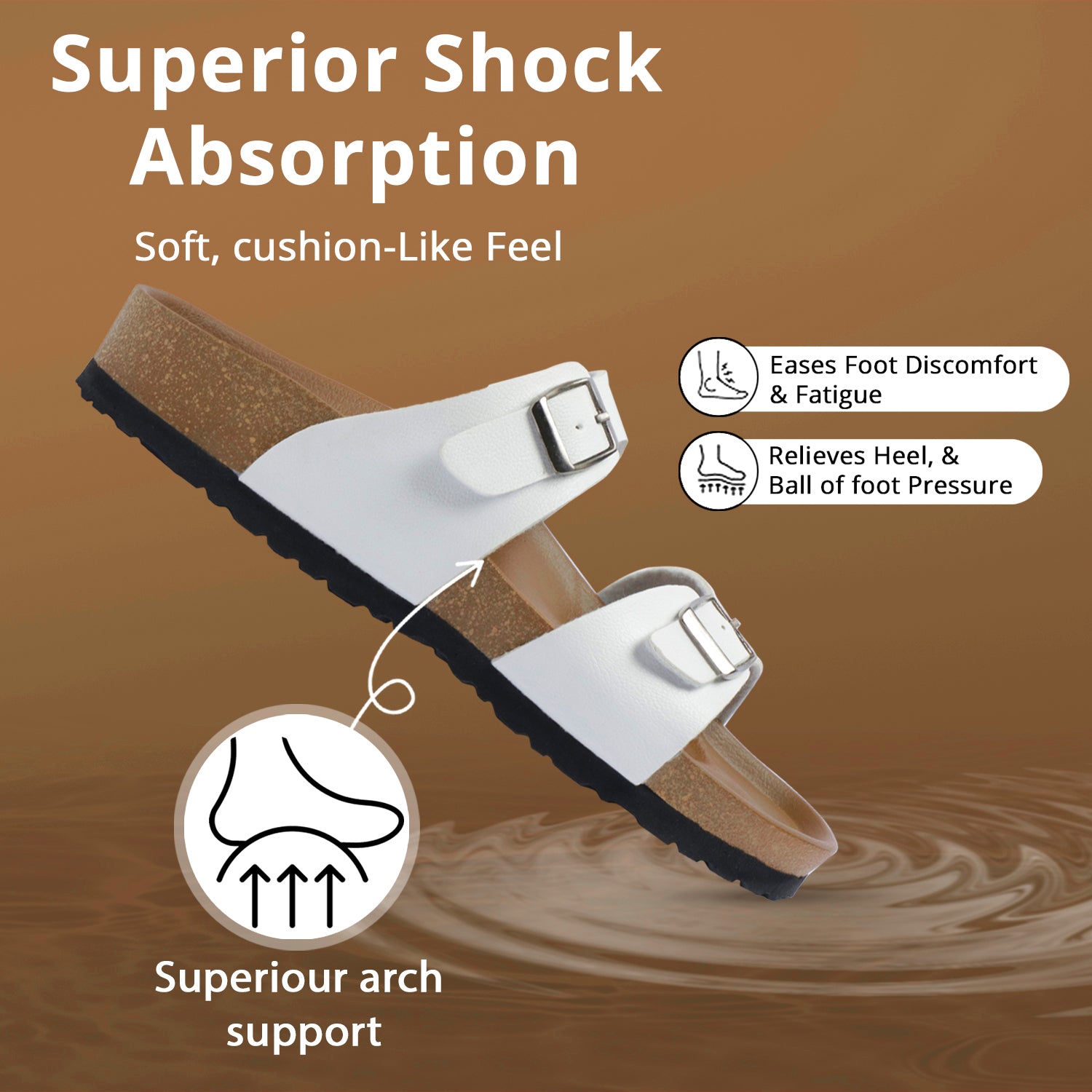 Bliss Women’s Comfort Slip-On Sandals with Arch Support | Adjustable Double Buckle Straps | Ergonomic and Soft Cushioned Footbed | Lightweight | Latest, Stylish and Trendy Footwear for Women