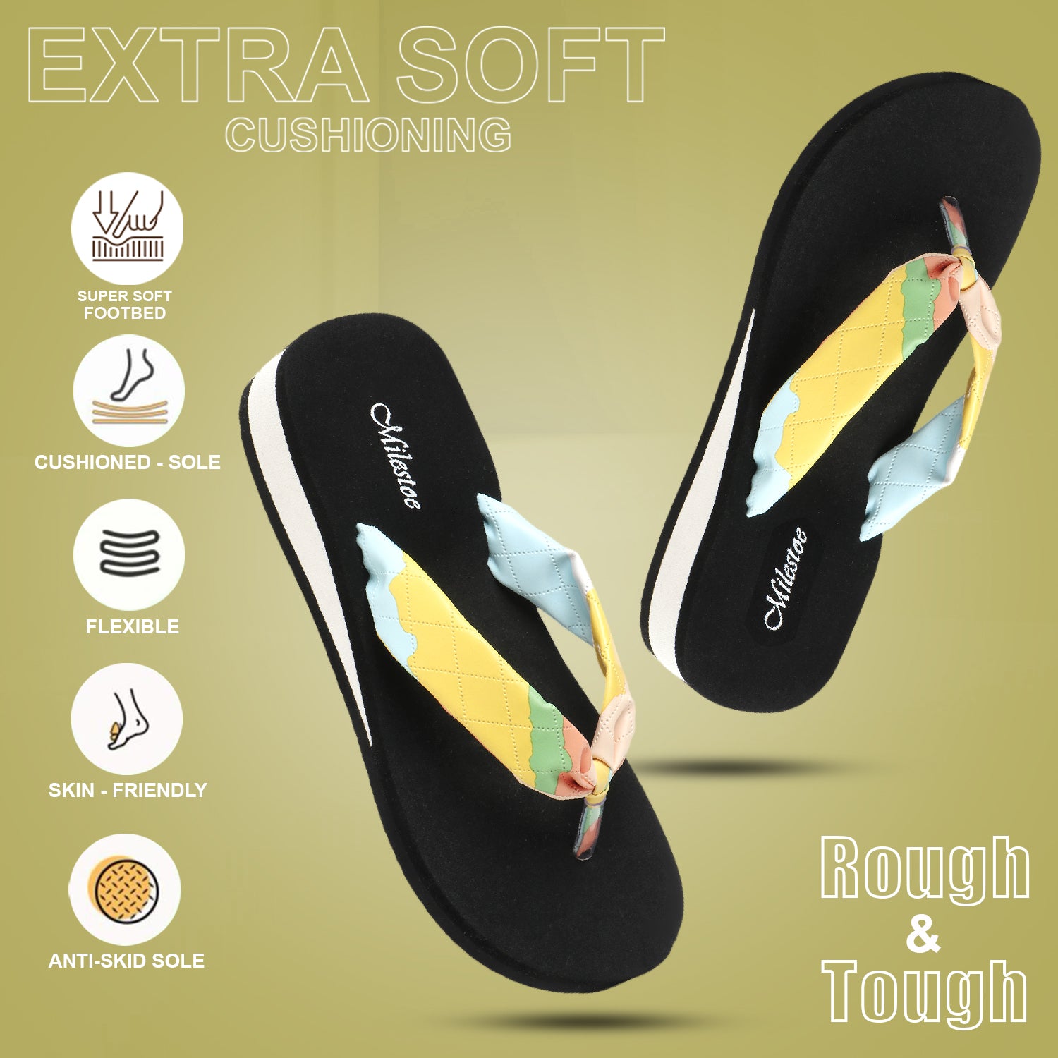 • Anti-Skid Textured Outsole: The deeply grooved outsole provides firm traction on multiple surfaces—whether you're walking on tiles, pavements, or poolside. Walk with confidence, slip-free and secure.
